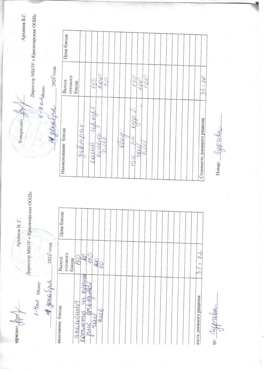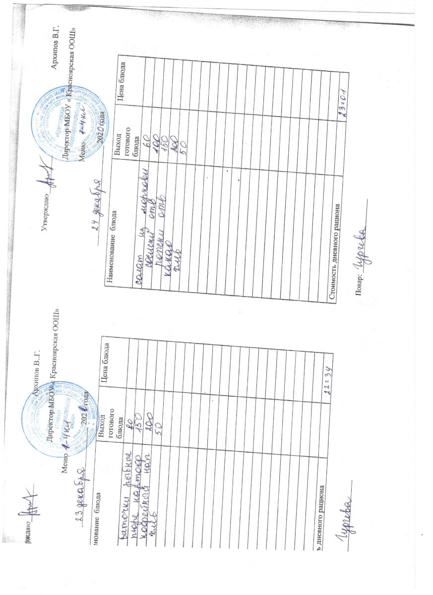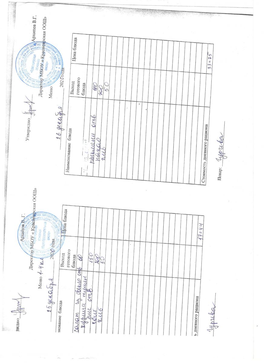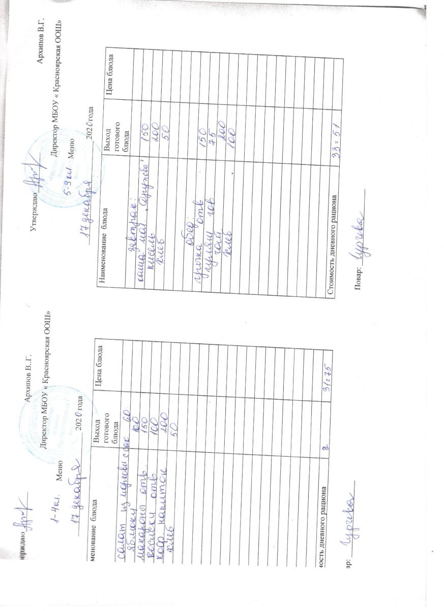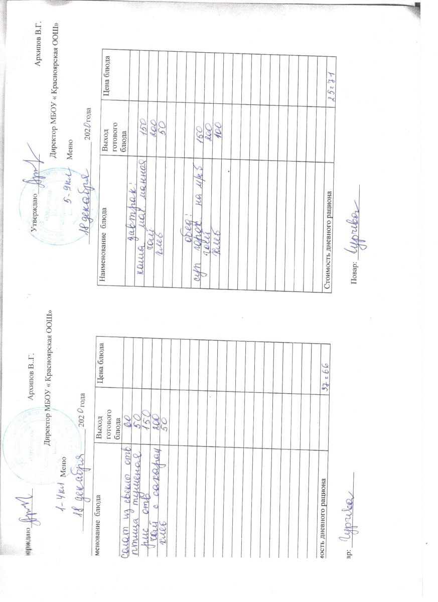Меню учащихся 1 - 4 классов 1 неделя(зимний сезон) 2 неделя (зимний сезон)