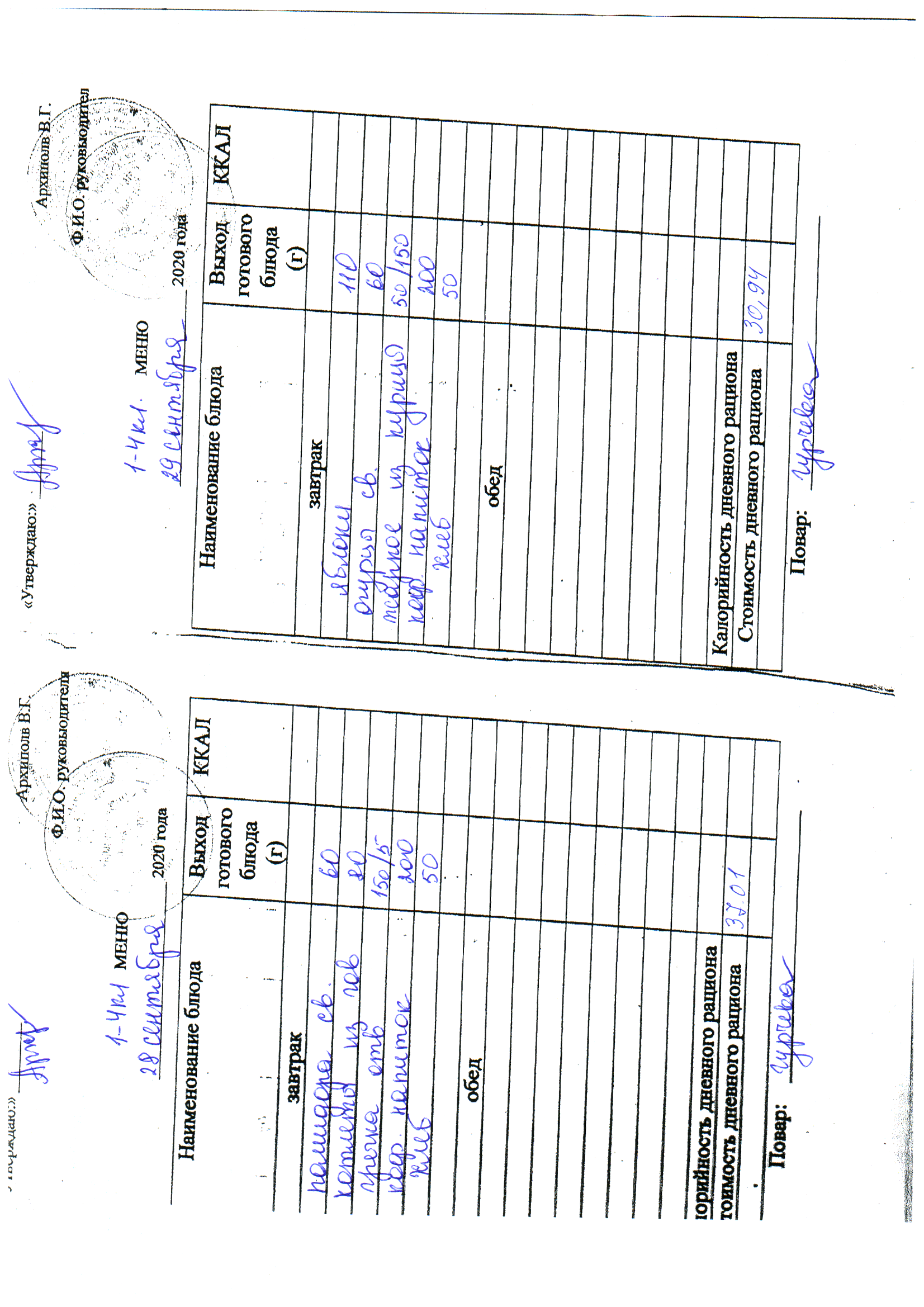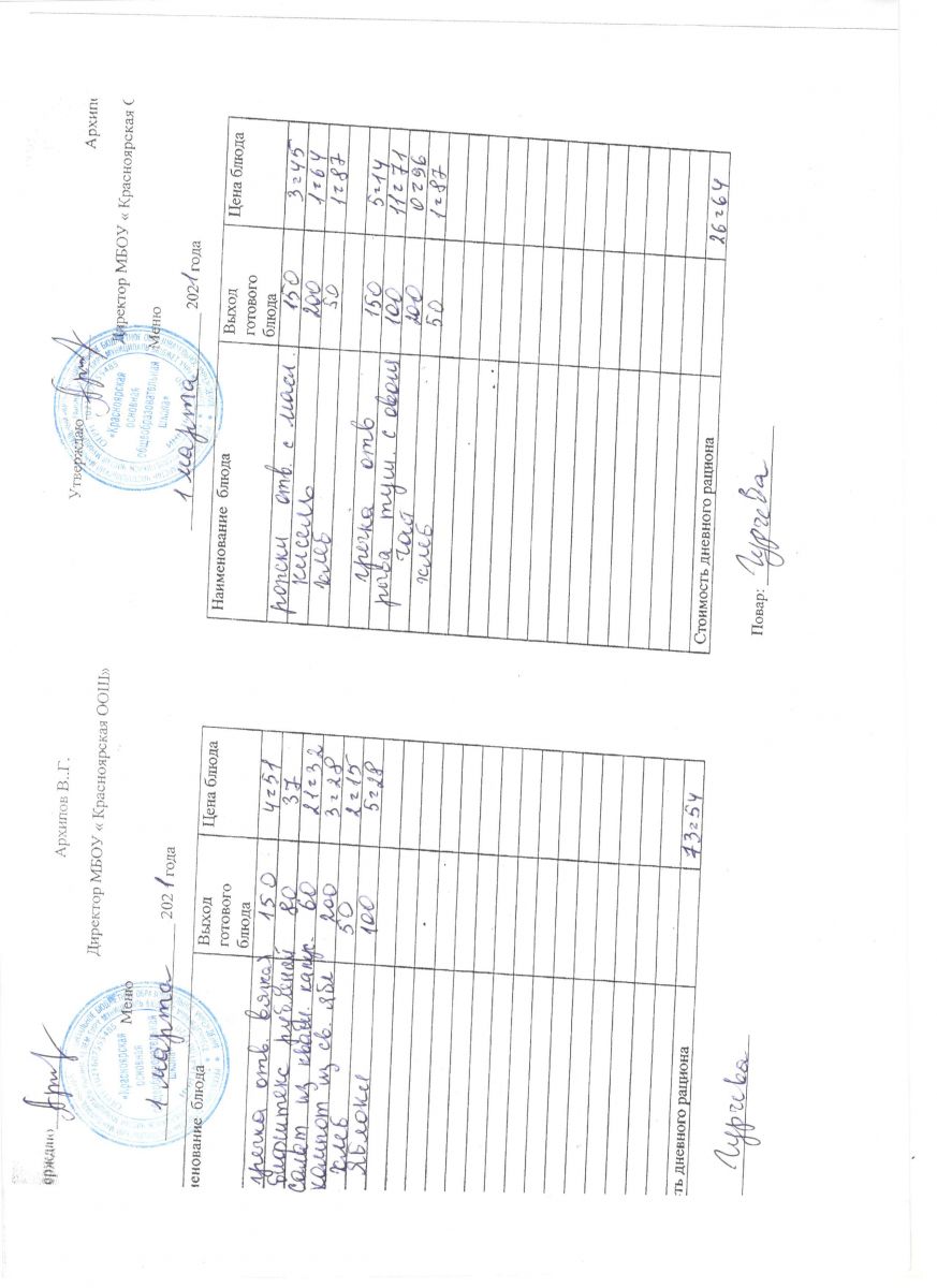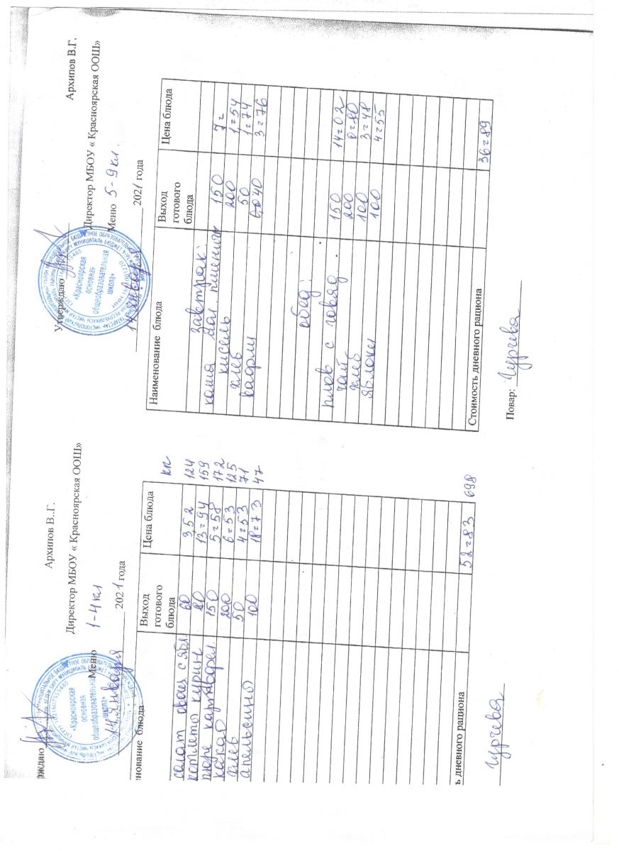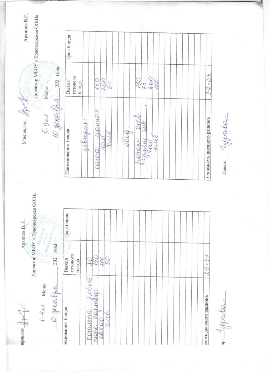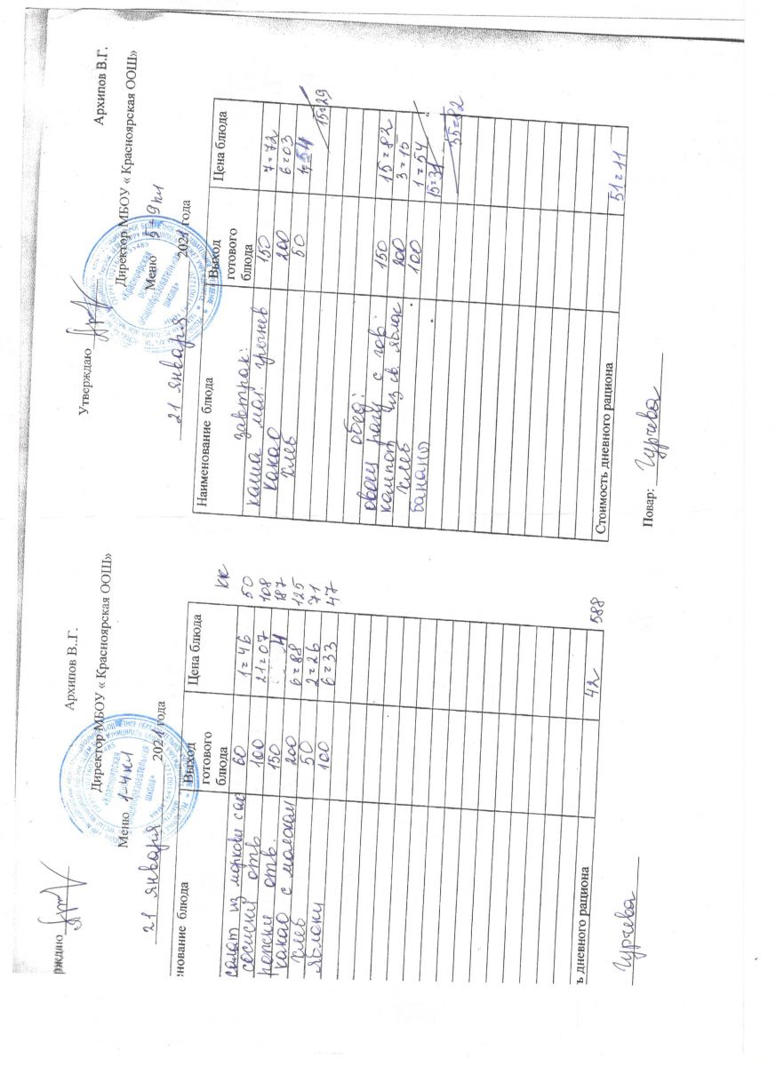 Меню учащихся 1 - 4 классов 1 неделя(зимний сезон) 2 неделя (зимний сезон)