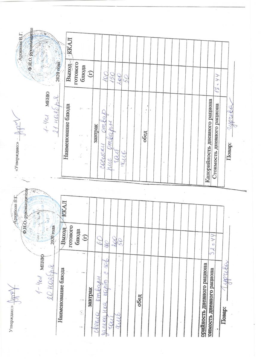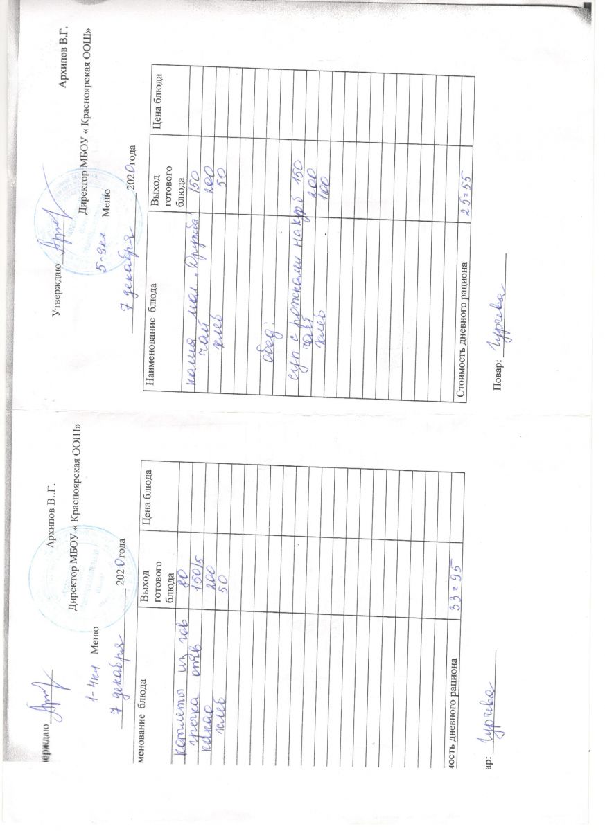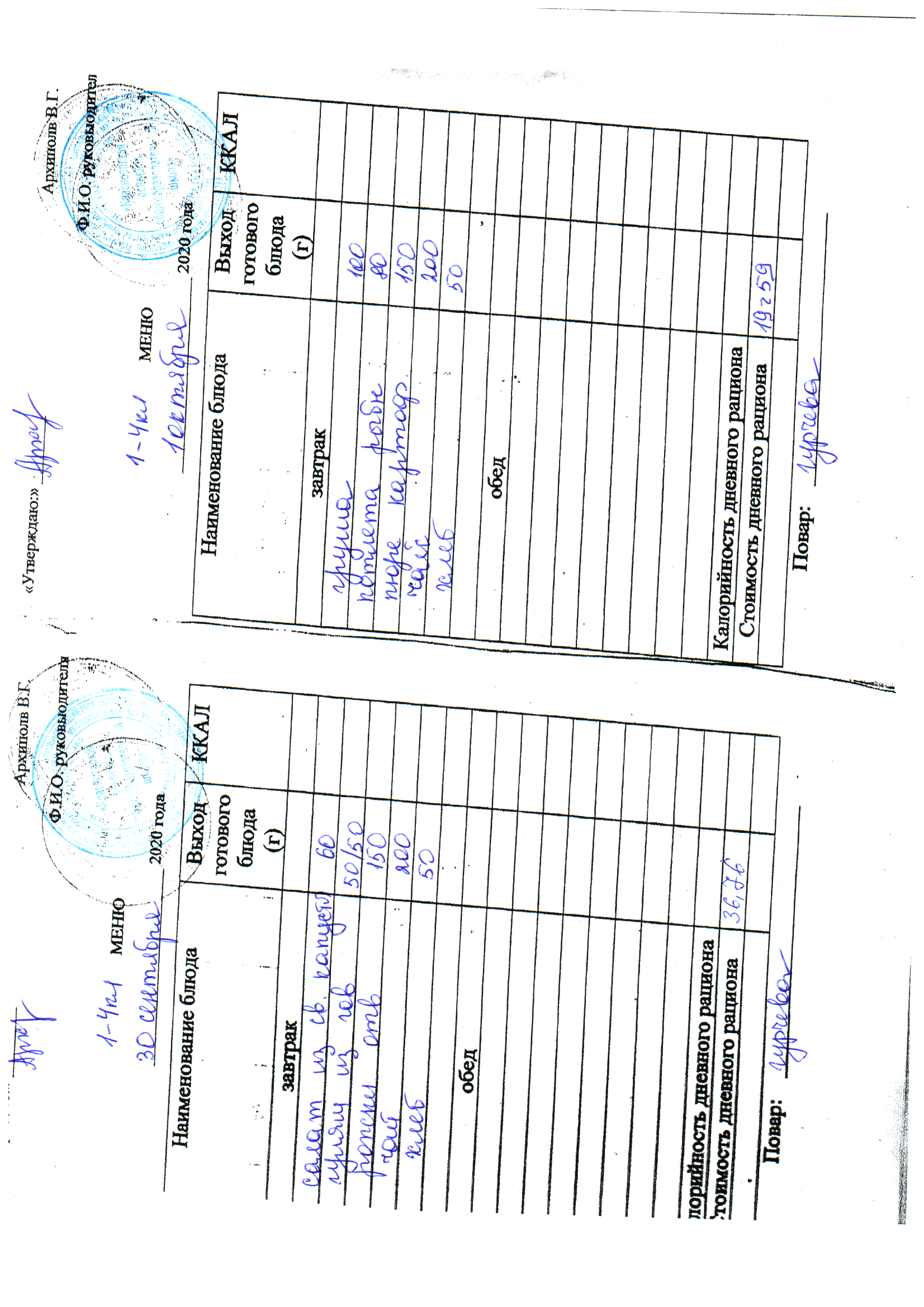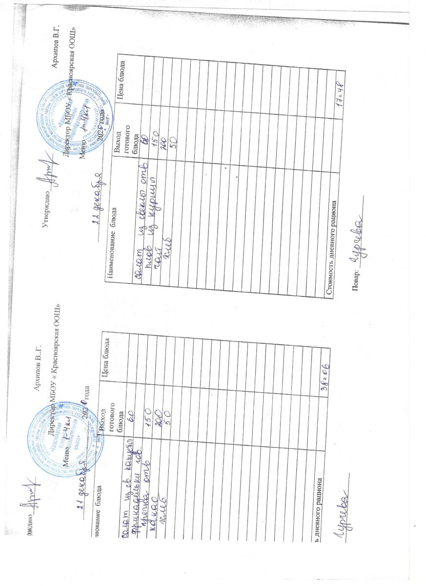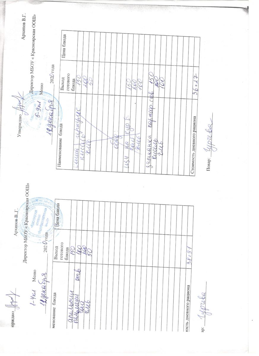 Меню учащихся 1 - 4 классов 1 неделя(зимний сезон) 2 неделя (зимний сезон)