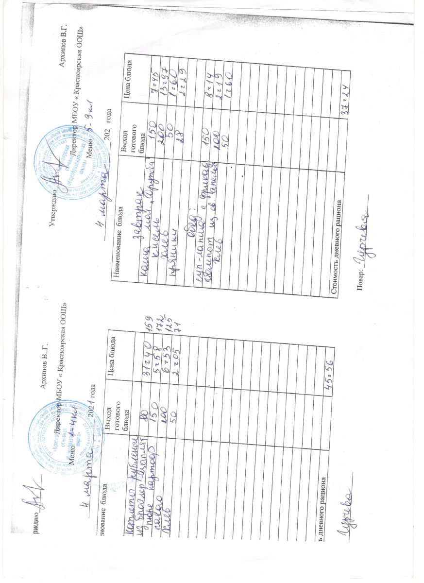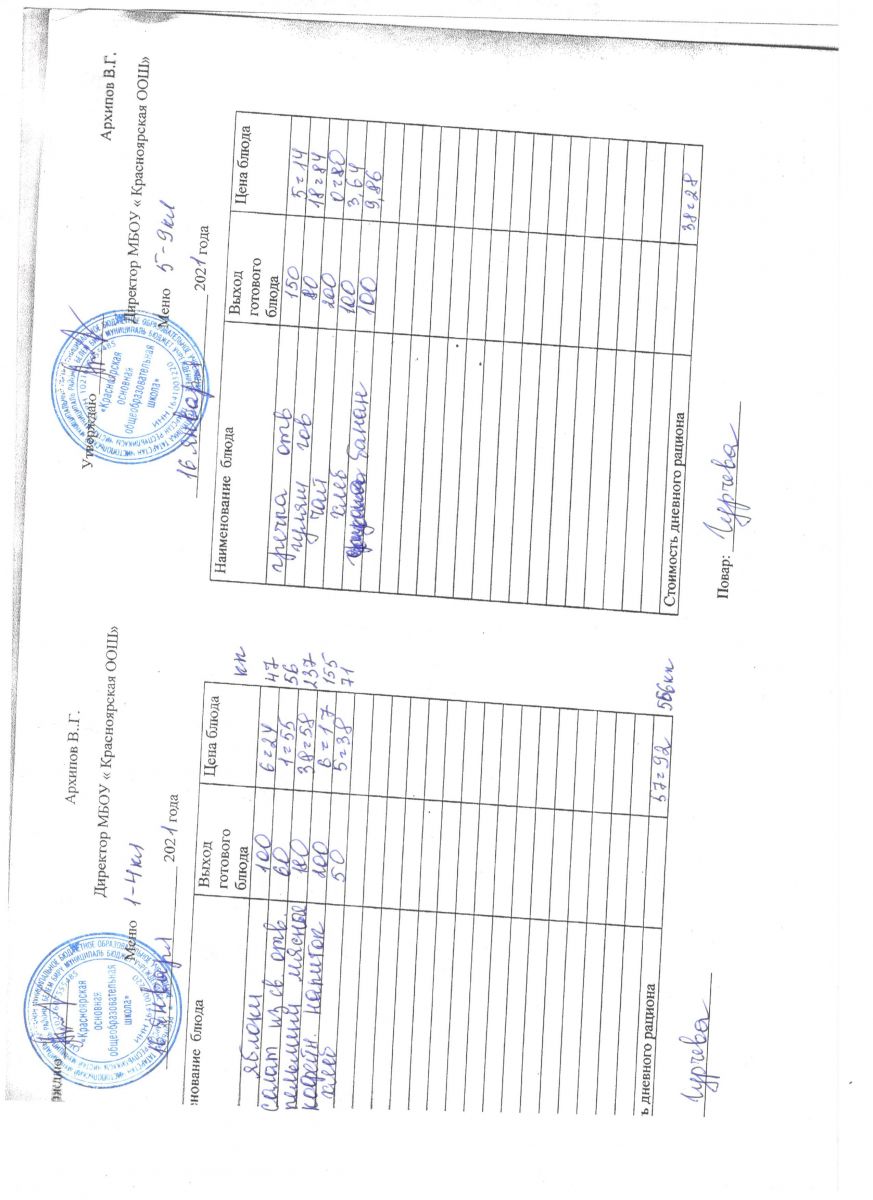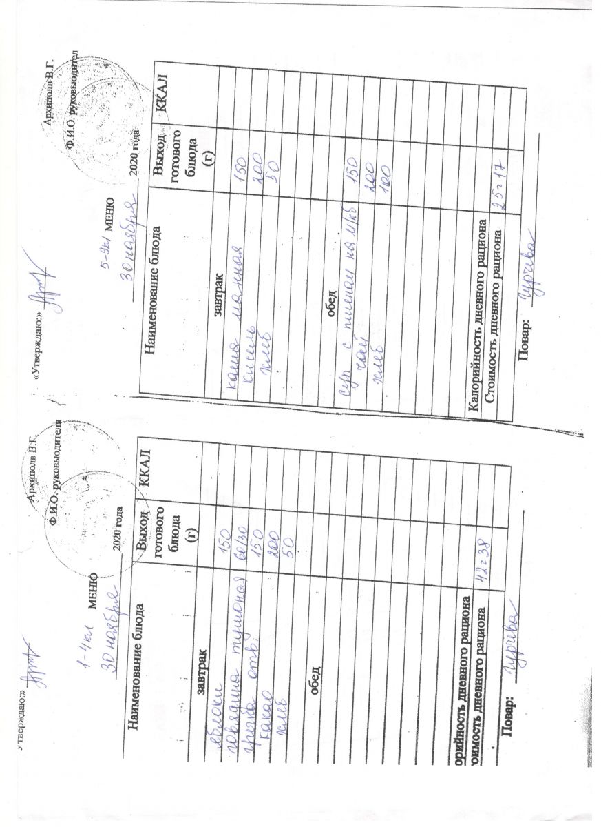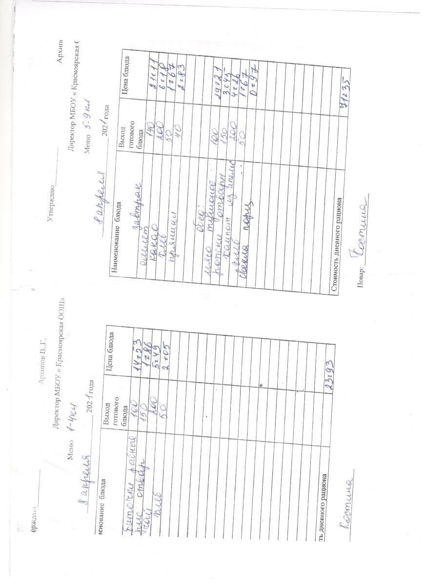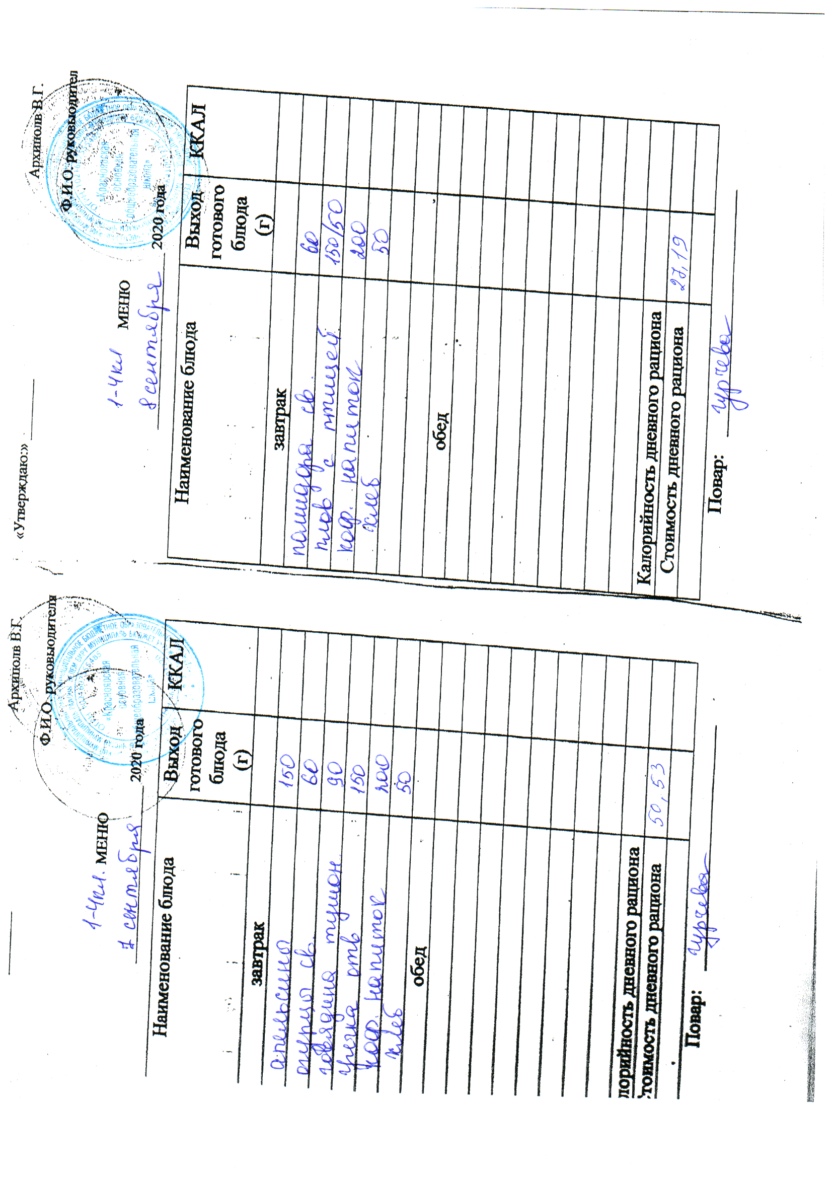 Меню учащихся 1 - 4 классов 1 неделя(зимний сезон) 2 неделя (зимний сезон)