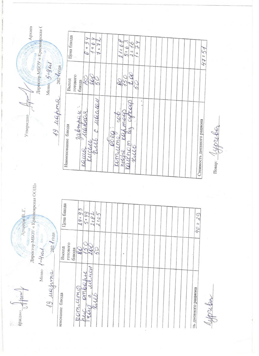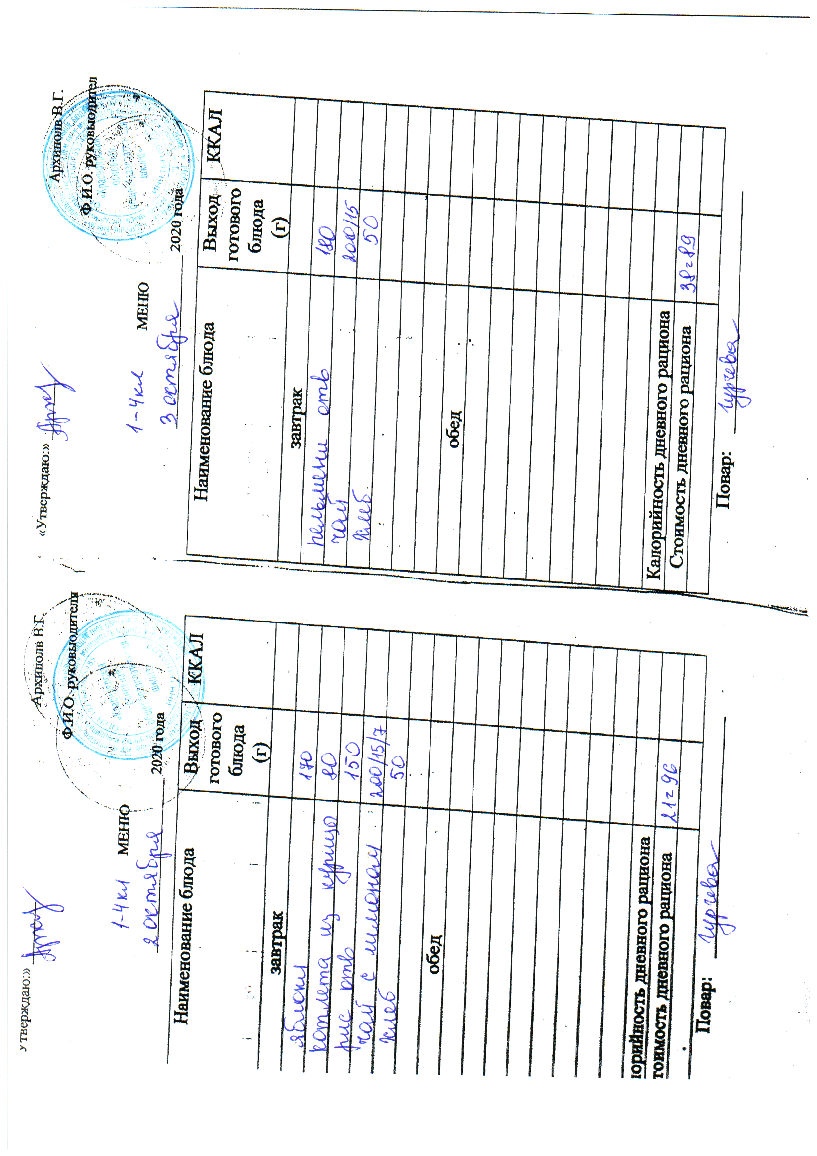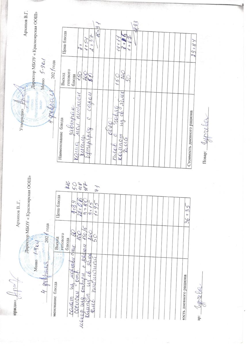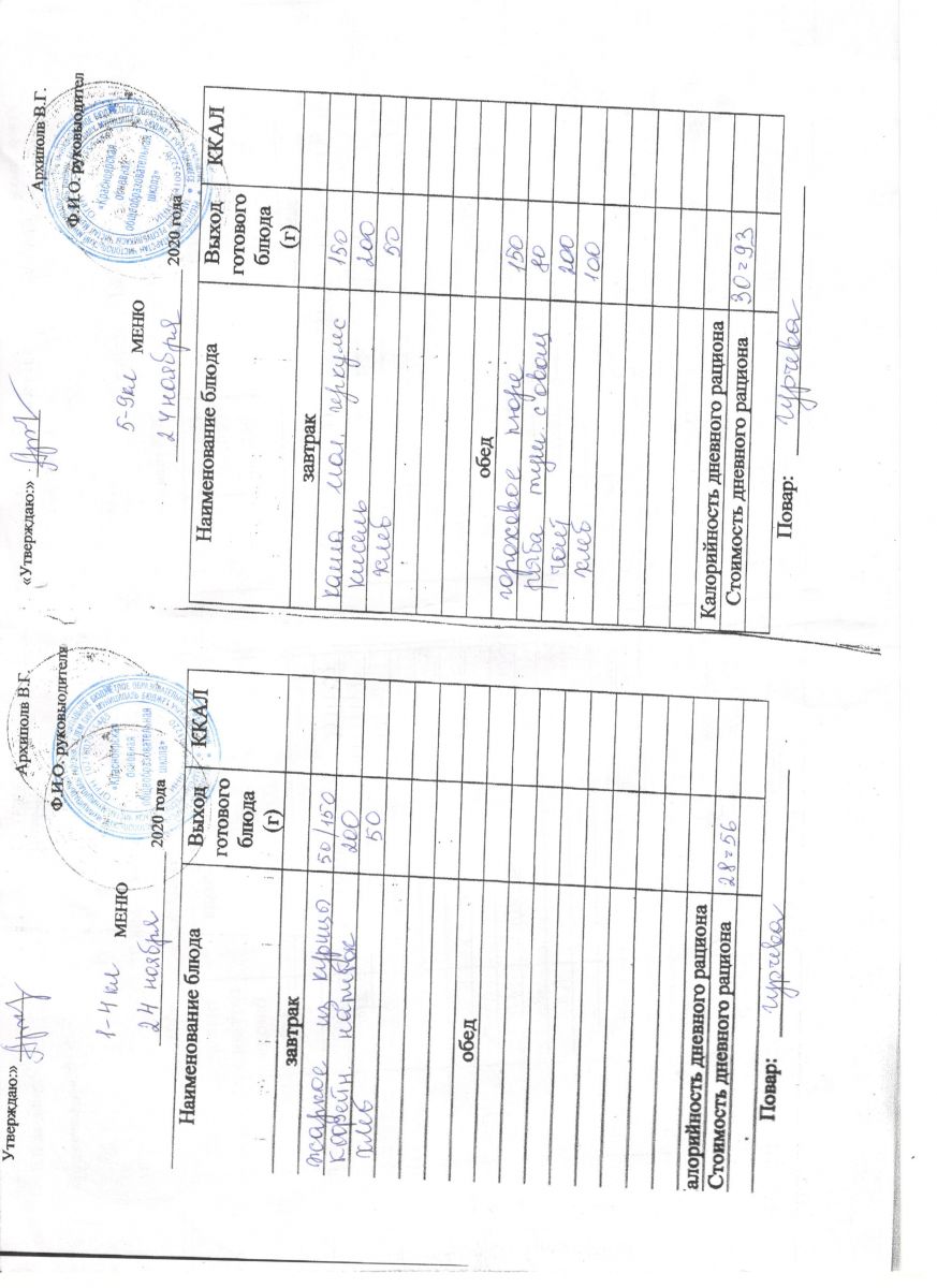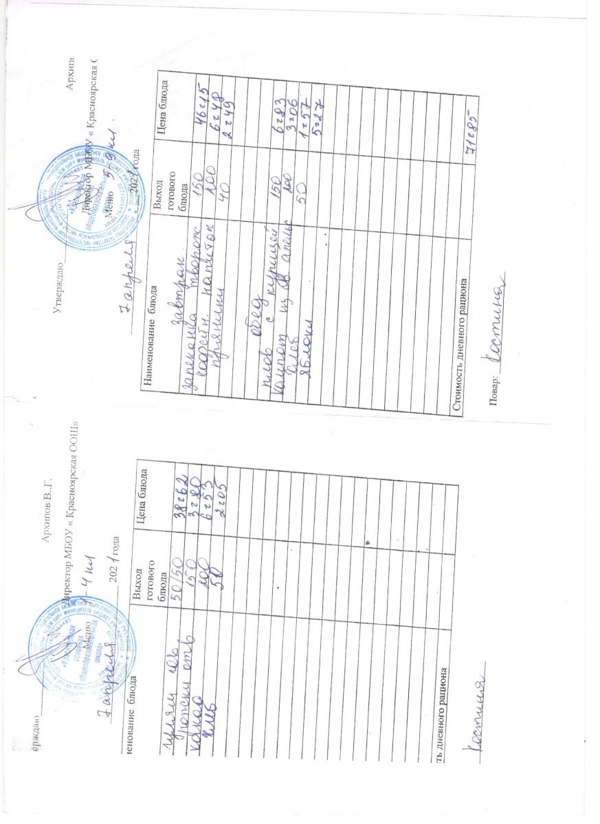 Меню учащихся 1 - 4 классов 1 неделя(зимний сезон) 2 неделя (зимний сезон)