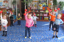 С целью формирования и совершенствования двигательных навыков , сохранения и укрепления здоровья ребенка ежедневно в детском саду проводится утренняя гимнастика.