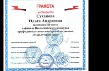 Всероссийский конкурс профессионального мастерства педагогов "Мой лучший урок". Суханова Ольга Андреевна