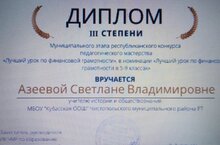 Педагогларның "Минем иң яхшы дәресем" Бөтенроссия һөнәри осталык конкурсы. Азеева С. В. 3 дәрәҗә Диплом.