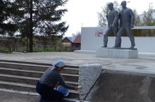 Подготовка к митингу, посвященному празднованию Дню Победы. Уборка пришкольной территории.