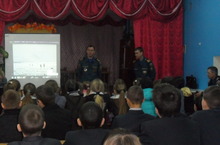 Специалисты : Марфин М.Г, Колясов В.М., Колчин В.Н. ФКУ Центра государственной инспекции по маломерным судам Министерства Российской Федерации по делам гражданской обороны, чрезвычайным ситуациям и ликвидации последствий стихийных бедствий по Респулике Татарстан выступили учащимися (73 ч) с докладои и презентацией на тему: Обеспечение безопасности и правила поведения на водных объктах, оказание первой доврачебной медицинской помощи"