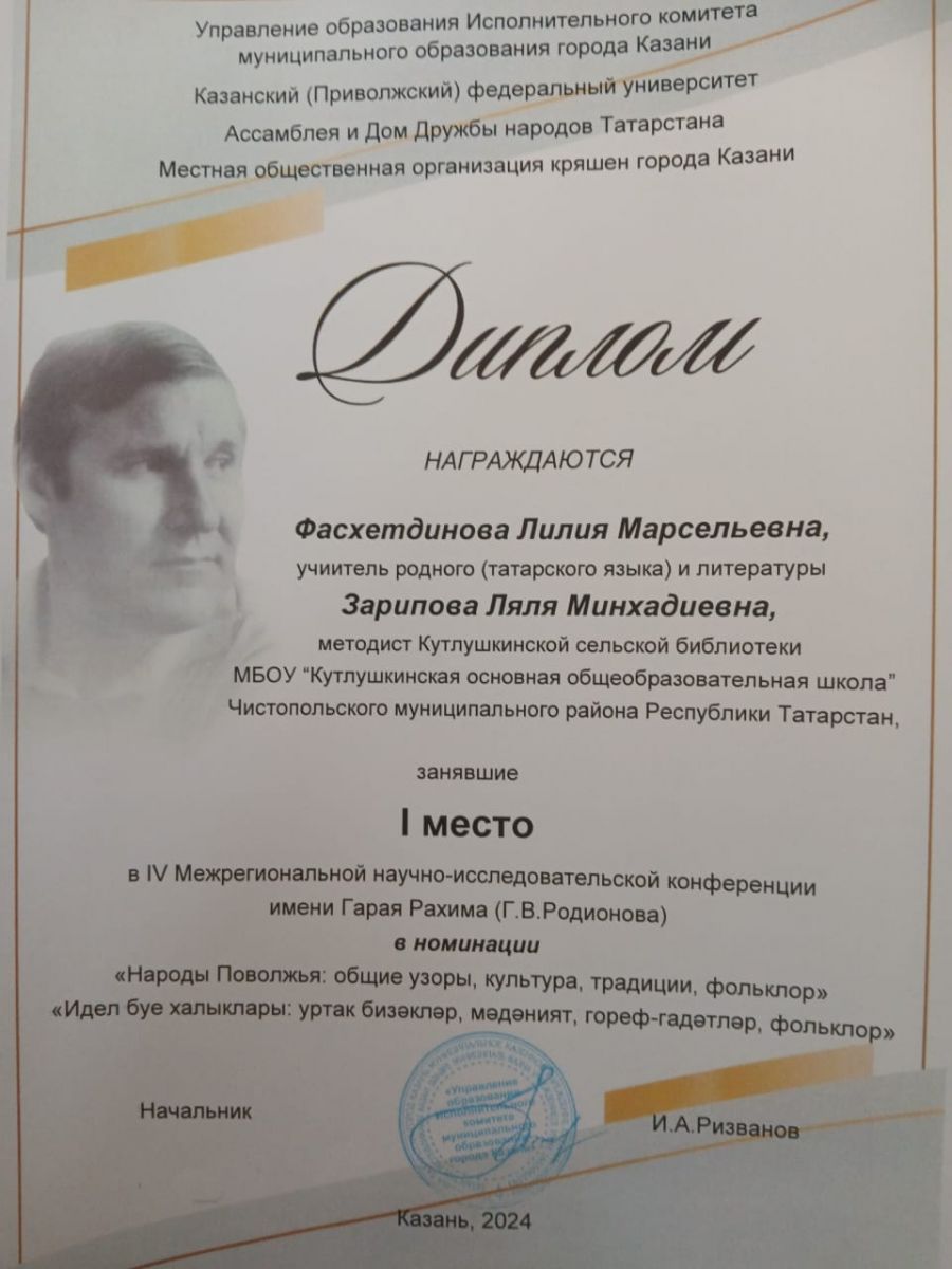 29.03.2024 в Доме дружбы народов Татарстана прошла IV Межрегиональная научно-исследовательская конференция им. Г. Рахима ( Г. В. Родионова).