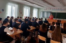 Саттарова Е.И., учитель русского языка и литературы , классный руководитель 9А класса рассказала ребятам о Дне героев Отечества, показала презентацию о защитниках Родины с древней Руси до современности, о мужестве тех, кто защищал нашу землю, кто не щадил себя ради блага Отечества, кто до конца остался и остается верен воинскому и гражданскому долгу — о тех, кого мы называем героями Отечества.