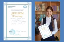 Елизавета Попкова, ученица 9-б класса, награждена Дипломом III степени I Всероссийской (VIII Региональной) научной конференции учащихся, секция "Русский язык"!