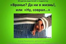 15.05.2013 в 6б классе прошло итоговое родительское собрание. Родители познакомились с анализом успеваемости учащихся за 3 четверть и предварительными итогами за 4 четверть. Затем родителям была предложена презентация "Вранье? Да ни в жизнь!, Или "Ну, соврал...", в которой предложены советы психолога -30 шагов родителей к подростку.