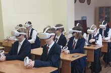 Во время VR экскурсии ребята надевают шлем виртуальной реальности и отправляются в путешествие в историческую часть Казани какой она была больше века назад.