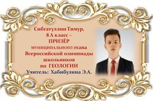 Поздравляем Тимура Сибгатуллина и его учителя Эльвиру Асгатовну Хабибулину с ПРИЗОВЫМ МЕСТОМ в муниципальном этапе Всероссийской олимпиады школьников по ГЕОЛОГИИ среди учащихся 8 классов и желаем им новых ПОБЕД! Молодцы!!!
