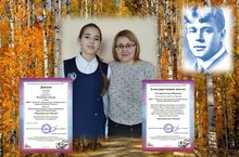 Ученица 7 А класса Амалия Платонова и её учитель-наставник Елена Ивановна Саттарова стали ПОБЕДИТЕЛЯМИ во Всероссийском конкурсе чтецов «Песенный поэт России», посвящённом творчеству Сергея Есенина! Молодцы! Новых вам побед!