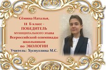 Поздравляем Наталью Сёмину и её учителя Марину Сергеевну Хуснуллину с ПОБЕДОЙ в муниципальном этапе Всероссийской олимпиады школьников по ЭКОЛОГИИ среди учащихся 11 классов и желаем им новых ПОБЕД! Молодцы!!!