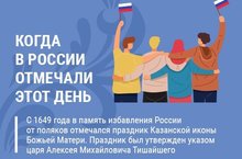 • Почему в России сначала перестали праздновать, а затем возобновили торжества в честь Дня народного единства?Смотрите нашу инфографику, читайте больше, изучайте историю самостоятельно
