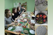Ученики 8б класса посетили мастер - класс по изготовлению декоративного панно из глины в технике жгута. Сделали подарки мамам к 8 Марта.