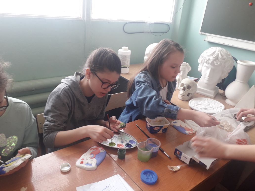 Опубликовано: 28.03.201827.03.2018 г ученики 6Б класса посетили мастер - класс по росписи гипсовых фигур в художественной школе, организованный в рамках проекта «Культурные каникулы». Преподаватели школы и студенты многопрофильного колледжа показали детям гипсовые образцы и профессиональные изображения, объяснили принцип работы гипсом, показали поэтапное выполнение работ. Затем ребята при помощи специальных готовых форм изготовили собственное изделие и раскрасили гипсовые фигурки яркими гуашевыми красками. Творчество из гипса стало новым занятием для ребят, они увлеченно работали и прекрасно справились с поставленной задачей. Такой доступный и стильный презент к подарку будет по душе любому.