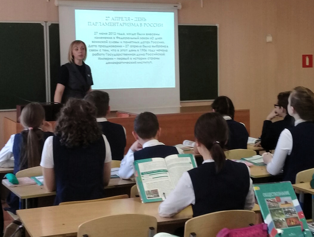 27 апреля в России – День Парламентаризма. В честь этого события ежегодно проводятся различные мероприятия, приуроченные к этой дате. В Лицее состоялись традиционные уроки Парламентаризма. Ученики 7-х классов познакомились с историей появления парламентаризма в России, поучаствовали в викторине.