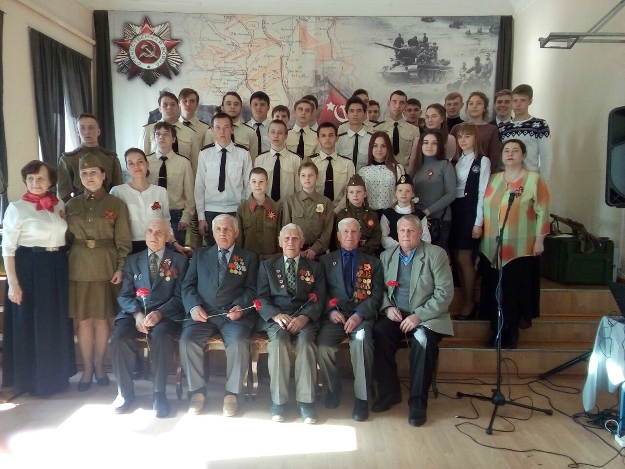 Опубликовано: 07.05.20184 мая ученики десятых классов посетили мероприятие, посвященное Дню Победы в ВОВ, организованное Музеем истории города Чистополя. На мероприятие были приглашены ветераны: Хайруллин Накип Мубаракшинович, Арсеньтьев Сергей Иванович, Кромберг Валерий Николаевич, Лизунов Олег Давидович. Дети декламировали стихи, спели песни артисты. Особенным было стихотворение поэтессы Солдатовой, посвященное её отцу. Благодаря этой встрече, ученики смогли услышать рассказы от действительных участников Великой отечественной войны и оставивших свой след в истории. Хотим выразить искреннюю благодарность ветеранам за мирное небо над головой, а также сотрудникам музея истории города Чистополя за организацию данного мероприятия.