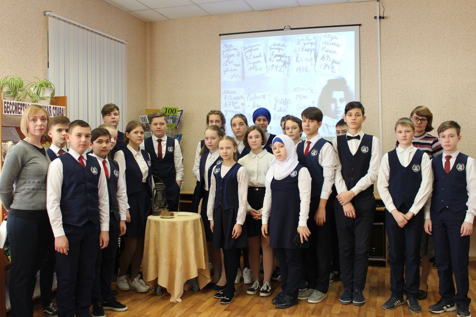 В рамках празднования 75-летия снятия блокады Ленинграда в школьной библиотеке продолжаются мероприятия, посвященные этой дате. 30 января 2019 года для учащихся 7А и 7В прошли Уроки памяти «Блокадный Ленинград».