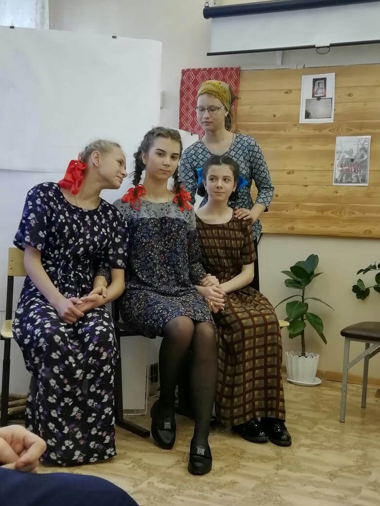 10 мая в 7Б класс были приглашены большие гости: труженица тыла - Корнева Вера Михайловна, дитя войны - Завьялова Лидия Ивановна, обе женщины - вдовы участников Великой Отечественной войны. На мероприятие были приглашены и родители нашего класса. Ребята приготовили и показали подарок: спектакль, посвящённый женщинам и детям войны "Просто ты умела ждать...". Когда закончился спектакль, Лидия Ивановна сказала: "Всё так и было..." Спектакль тронул всех присутствующих. Затем наши гостьи рассказали о себе, о трудной жизни в военные годы. Вера Михайловна работала на эвакуированном в Чистополь часовом заводе. Лидия Ивановна с мамой, с сестрой и братом переехали в 1941 году из Горьковской области в Чистополь , ближе к родине отца, который был в то время на фронте. Училась в школе. Семья жила очень тяжело. Женщины рассказали и о своих мужьях, ветеранах Великой Отечественной войны.