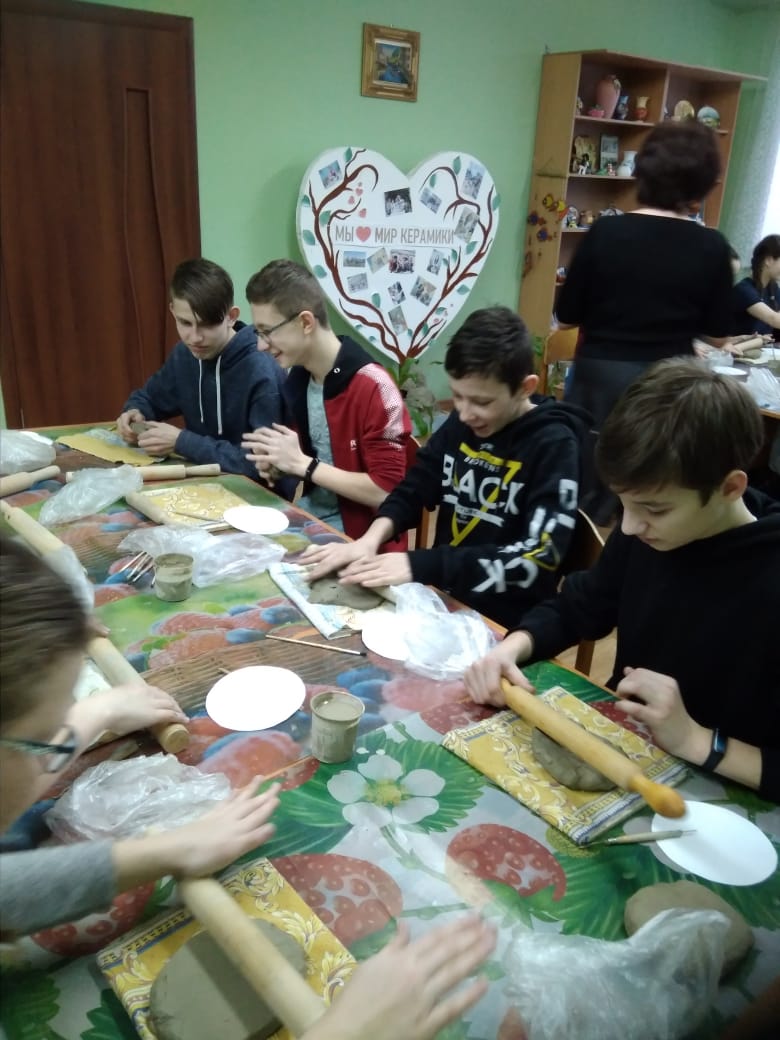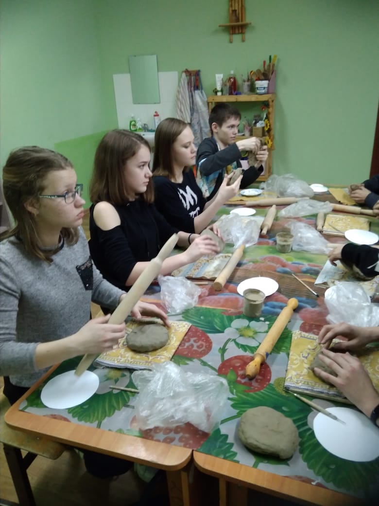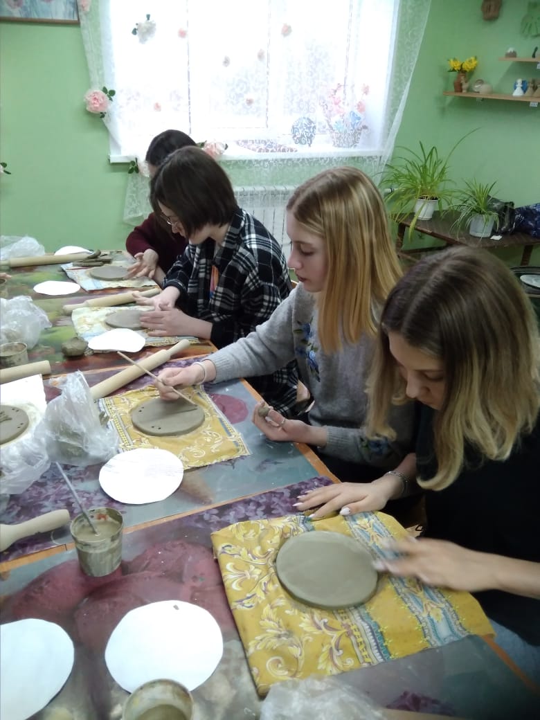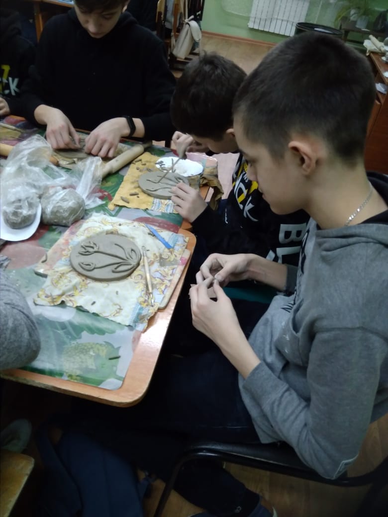 Опубликовано: 08.03.2020Ученики 8б класса посетили мастер - класс по изготовлению декоративного панно из глины в технике жгута. Сделали подарки мамам к 8 Марта. Занятие во Дворце творчества детей и молодёжи для нас провели Новикова Валентина Петровна и Сунгатуллина Лилия Нургатиновна. Многие ребята работали с глиной в первый раз, несмотря на это, панно получились очень красивые. Благодарим Валентину Петровну и Лилию Нургатиновну за такое интересное занятие!