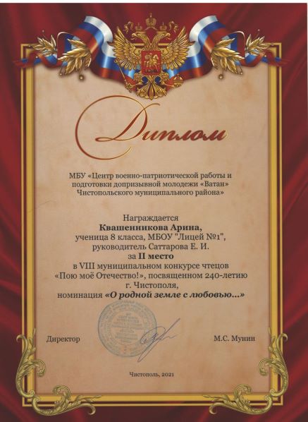 Муниципальное бюджетное общеобразовательное учреждение «Лицей №1» Чистопольского муниципального района Республики Татарстан / Татарстан Республикасы Чистай муниципаль районы Муниципаль бюджет гомуми белем учреждениесе «1нче номерлы лицей»