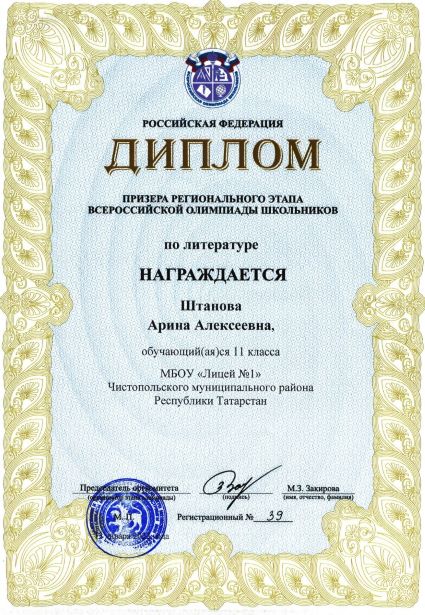 Арина - республиканский призёр по литературе!