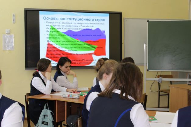 Опубликовано: 15.02.2022В 8-х классах прошел парламентский урок "Роль Конституции в жизни человека", посвященный 30-летию со дня принятия Конституции РТ. Дети на основе Конституции нашей республики говорили о правах и обязанностях человека и гражданина.