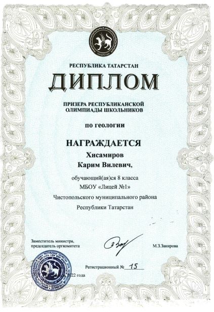 Карим - ПРИЗЁР республиканской олимпиады школьников по ГЕОЛОГИИ!