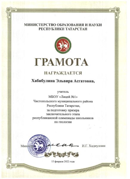 Опубликовано: 22.02.2022Карим - ПРИЗЁР республиканской олимпиады школьников по ГЕОЛОГИИ! Поздравляем Карима Хисамирова, ученика 8 Б класса, и его учителя Эльвиру Асгатовну Хабибулину с призовым местом в Республиканской олимпиаде школьников по ГЕОЛОГИИ! Молодцы! Новых вам побед!!!