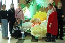 Ученица девятого класса Чиненкова Ангелина и активисты "Движения первых" МБОУ "Лучовская СОШ" совместно с советником директора по воспитанию оформили фото зону, посвящённую весеннему празднику "Международный женский день".