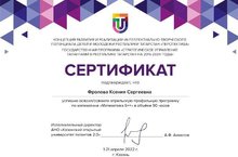 Учащаяся 7 класса МБОУ "Лучовская СОШ" Фролова К. успешно освоила апрельскую профильную программу по математике "Математика 6++" в объёме 90 часов и была награждена "Сертификатом".
