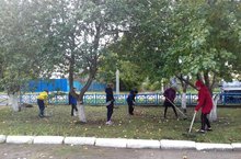 В школе состоялся субботник. Учащиеся 5-8 классов благоустраивали школьную территорию.