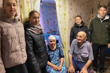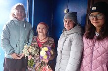 Учащиеся 7 класса поздравляют жительницу села с праздником.