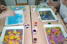 В рамках реализаөии пушкинской карты прошел мастер-класс по эбру - технике рисования на воде