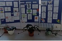 В школе идет Неделя английского языка.В фойе организована выставка иллюстраций к английским произведениям.