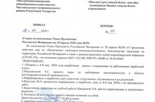 Во исполнении Указа Президента Российской Федерации от 28 апреля №294 «О продлении действия мер по обеспечению санитарно-эпидемиологического благополучия населения на территории Российской Федерации в связи с распространением новой короновирусной инфекции (COVID-19)», на основании приказа Муниципальное казенное учреждение «Управление образования исполнительного комитета Чистопольского муниципального района РТ» №480 от 30.04.2020г. объявить с 6 по 8 мая 2020 года нерабочими днями с сохранением за работниками заработной платы.