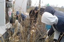 Сегодня в школе второй День Недели Добра. Мы на уборке территории школы.