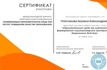 Воспитатель Плотникова А. А. приняла участие в работе круглого стола "Образовательная среда как компонент формирования социокультурного пространства дошкольного детства"