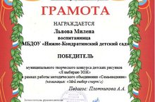 Наша воспитанница Львова М стала победителем в муниципальном творческом конкурсе детских рисунков "Я выбираю ЗОЖ" в рамках работы методического обьединения "Семьеведение" (номинация "Мой выбор спорт")