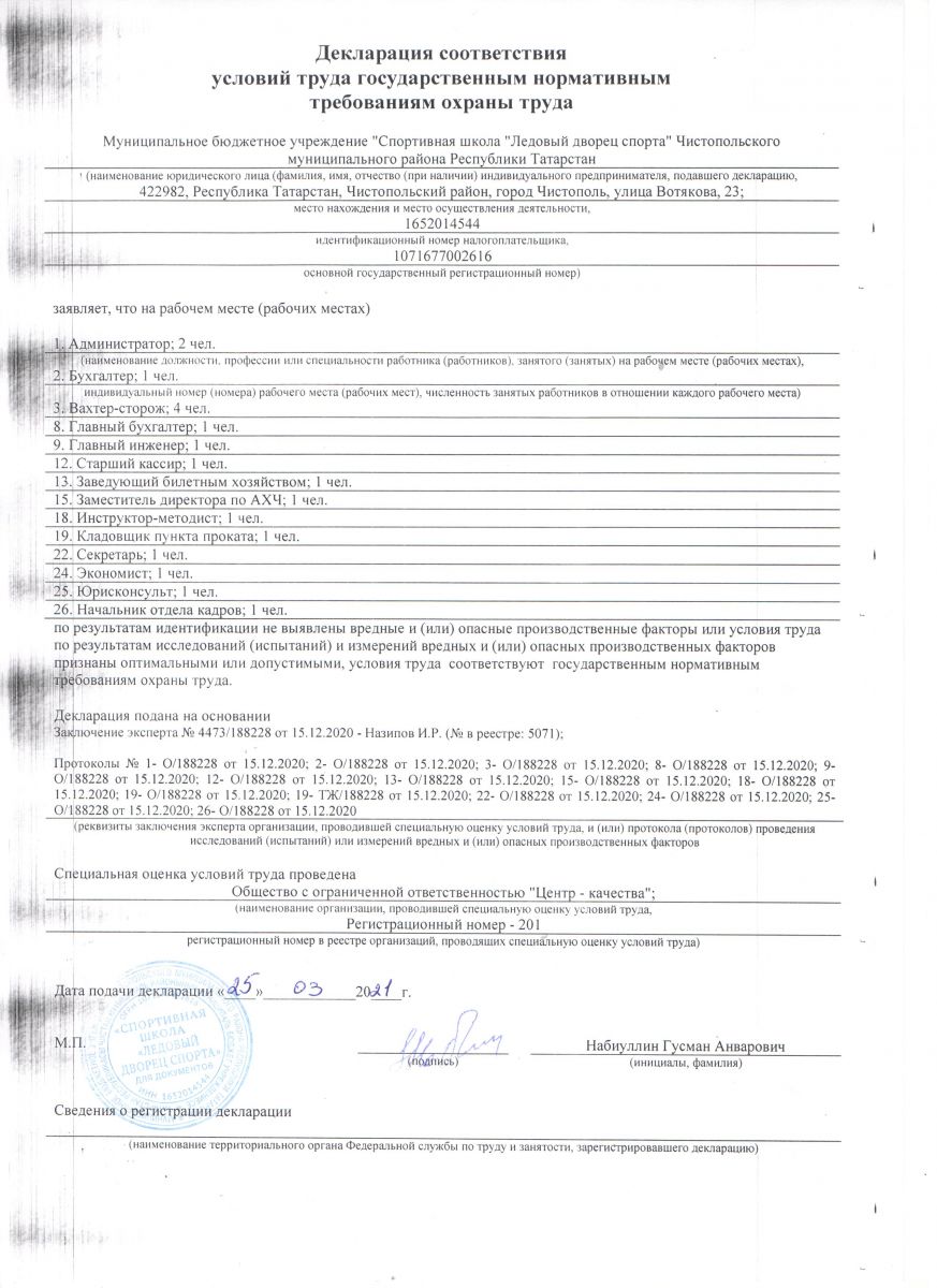 - Декларация СОУТ государственным нормативным требованиям охраны труда 2021 год