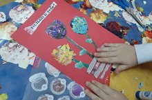 Леванова Ольга Владимировна познакомила детей с выполнением открытки в технике коллажа. Для выполнения работы ученики использовали картон, вырезки из журналов и газет. Целью для детей стало выполнение аппликации в виде букета цветов в вазе и дополнением его красивыми словами, пожеланиями для мамы. Сначала каждый подбирал для своих бутонов и стебельков определенный оттенок из журнальных картинок. Затем дети компоновали все главные элементы на картоне. Далее на бутоны приклеивались маленькие лепестки цветка, так же подобранные самостоятельно автором работы. Эффект был в том, что все элементы не вырезались ножницами, а форма создавалась путем обрывания бумаги. Ваза была изготовлена из газетных вырезок. Ну а слова и выражения дети подбирали каждый сам для своей мамы! Получились отличные подарки для мам! Дети работали с огромным удовольствием и каждый вложил частичку себя в свою работу. -