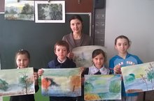В средней школе с. Старое Ромашкино состоялся мастер-класс по акварельной живописи «Пейзаж по сырому». Преподаватель И.В. Ахметшина сначала рассказала детям о том, как она сама начала рисовать. О том, как ее отец-акварелист В. Петров показывал ей свои приемы.