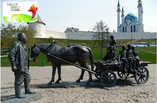 В Казани у стен казанского кремля есть прекрасный памятник - немолодой мужчина ведет под уздцы лошадь, запряженную в телегу; на телеге сидят с портфелями несколько детишек. Между детьми на телеге специальное место - специально, чтобы фотографироваться; при желании можно забраться и на лошадь.