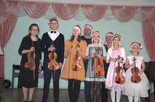 Нарядные и радостные юные музыканты слушали музыку, которую исполнили учащиеся преподавателя Шляхтина В. М. В завершении программы было сделано совместное фото детей с родителями. Маленькие участники мероприятия получили сладкие угощения. -