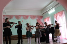 В концерте приняли участие ученики преподавателя по классу скрипки Абрамовой Ф.Л. - солисты и ансамбли. Кроме того, зрители имели возможность услышать такие инструменты, как флейта, домра, баян, балалайка.