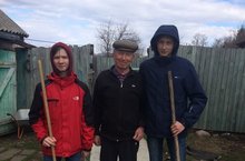 Члены волонтерского отряда техникума "Добрые сердца" в рамках всероссийской акции оказали помощь ветерану ВОВ в уборке территории.