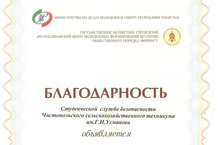 Республиканским центром молодежных формирований по охране общественного правопорядка Студенческой службе безопасности объявлен Благодарность за активное участие в развитии студенческого правоохранительного движения и профилактики правонарушений в молодежной среде.