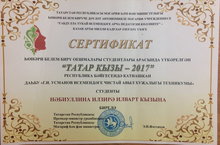 Студентка 321 группы Набиуллина Ильзира (руководитель Хасанова М. А., преподаватель татарского языка и литературы) участвовала в республиканском конкурсе «Татар кызы», который состоялся в Асрком педагогическом колледже. Она достойно выступила в номинациях «Мин табигать баласы», «Күркәм кием – тән зиннәте», «Акыл – тузмас байлык». Желаем ей дальнейших творческих успехов.